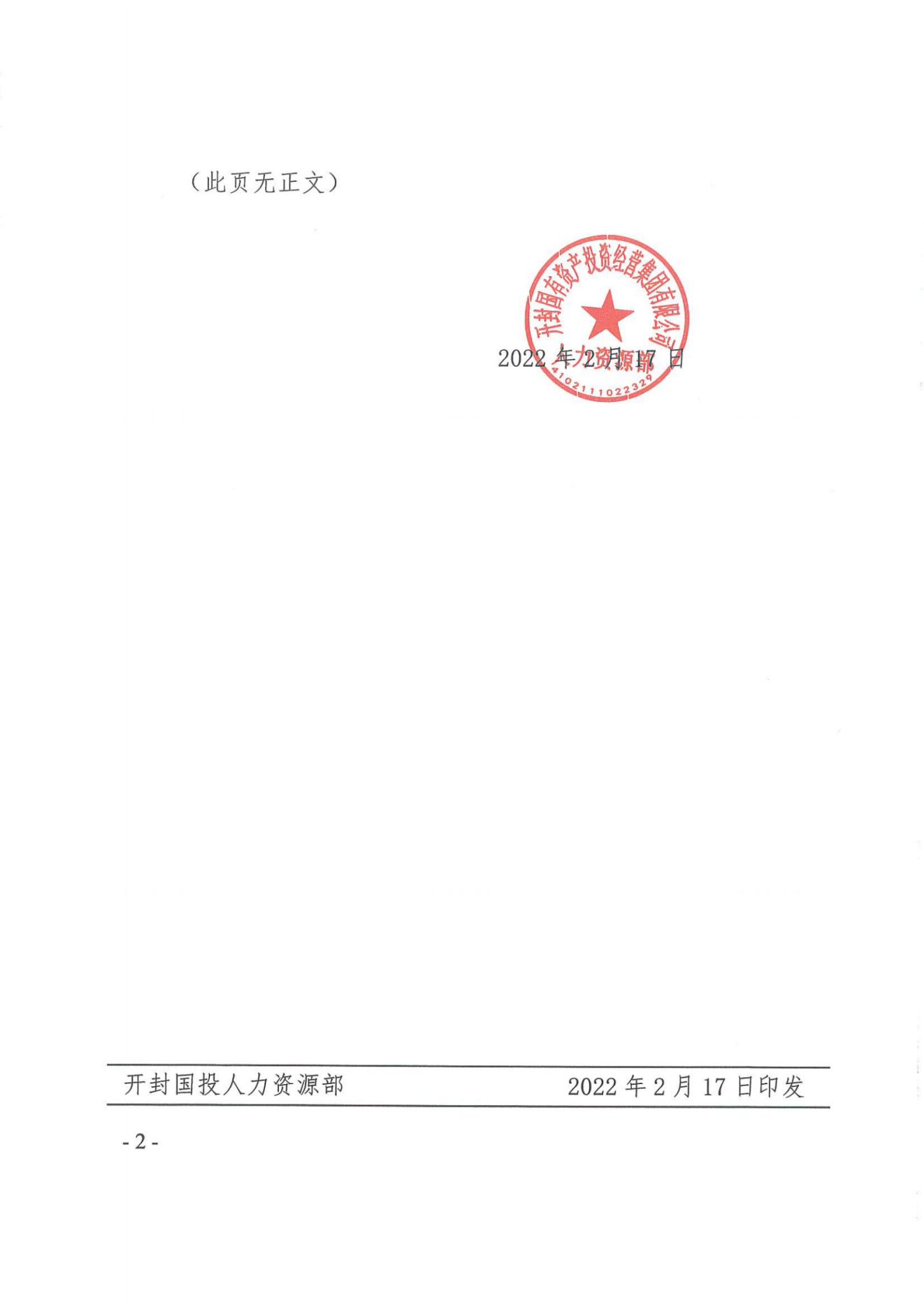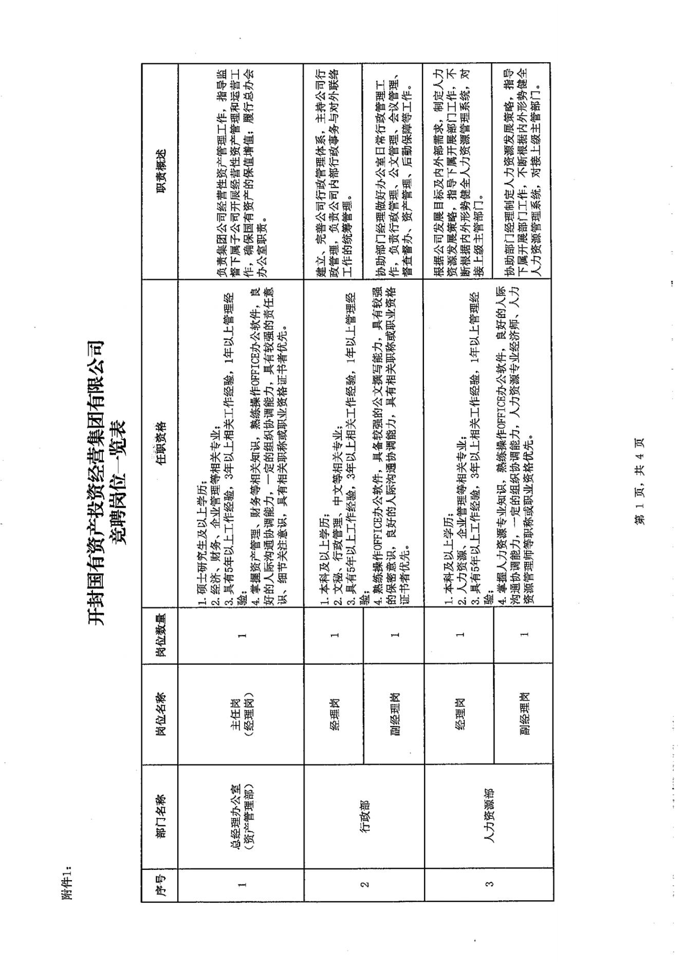 關于下發《開封國有資產投資經營集團有限公司中層干部內部競聘方案的通知》