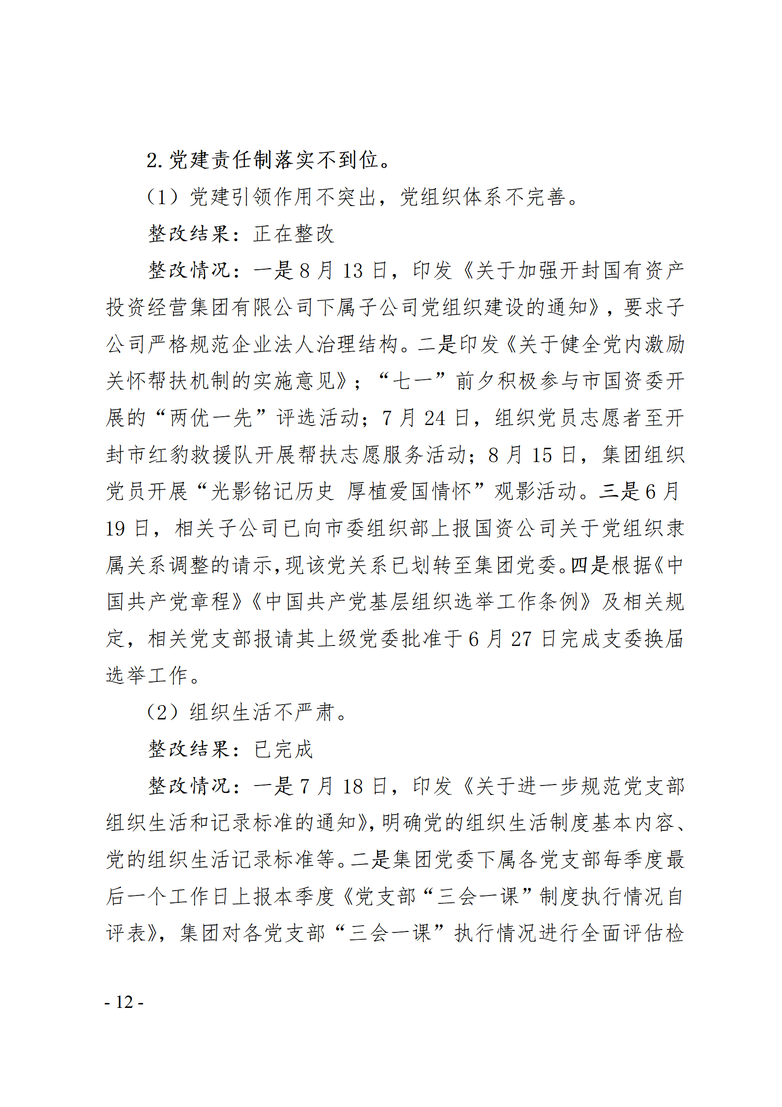 開封國有資產投資經營集團有限公司黨委關于巡察整改情況的通報